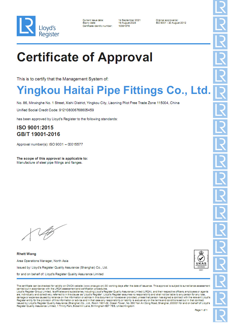 營口海泰金屬管業(yè)有限公司成立于2001年,是專業(yè)生產管道配件的制造經營企業(yè)。公司占地面積兩萬五千平方米,坐落于中國遼寧省港口城市營口。營口一市兩港(營口港、鲅魚圈港),東臨大連港四季通航,陸路運輸四通八達交通便利。